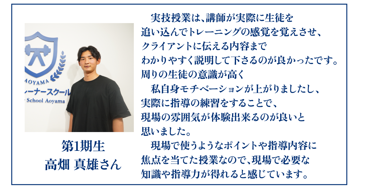 ×10時間前後 | ×12時間〜 | △パーソナルトレーニングに 関係ない講義もある |